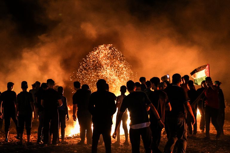 The army said on Sunday hundreds of Palestinians gathered along the separation barrier between Israel and the Gaza Strip during the night, hurling explosives and burning tyres and that troops responded with “riot dispersal means”.