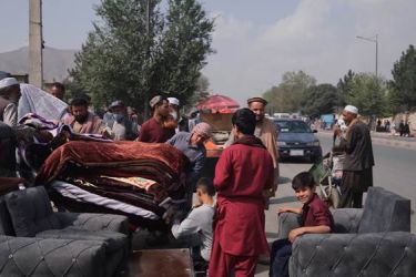 Kabul, Afghanistan – Shukrullah brought four carpets to sell in Kabul’s Chaman-e Hozori neighbourhood. The area is full of refrigerators, cushions, fans, pillows, blankets, silverware, curtains, beds, mattresses, cookware and shelves that hundreds of others carried to sell.