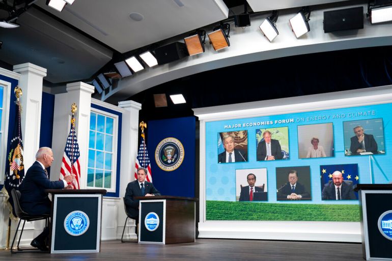 United States President Joe Biden tried to hammer out the world’s next steps against rapidly worsening climate change in a private, virtual session with a small group of other global leaders.