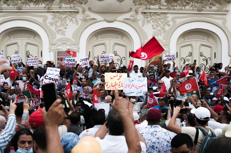 Four other Tunisian parties – Attayar, Al Jouhmouri, Akef and Ettakatol – also rejected Saied’s move, saying on Thursday the decrees enshrined an absolute power monopoly and that the president had lost his legitimacy.