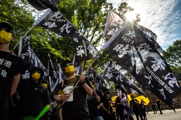 The phrase became a popular slogan during the 2019 mass protests, but authorities have since banned it, claiming it has secessionist connotations that are illegal under the national security law. The law outlaws secession, subversion, terrorism and foreign collusion to intervene in the city’s affairs.