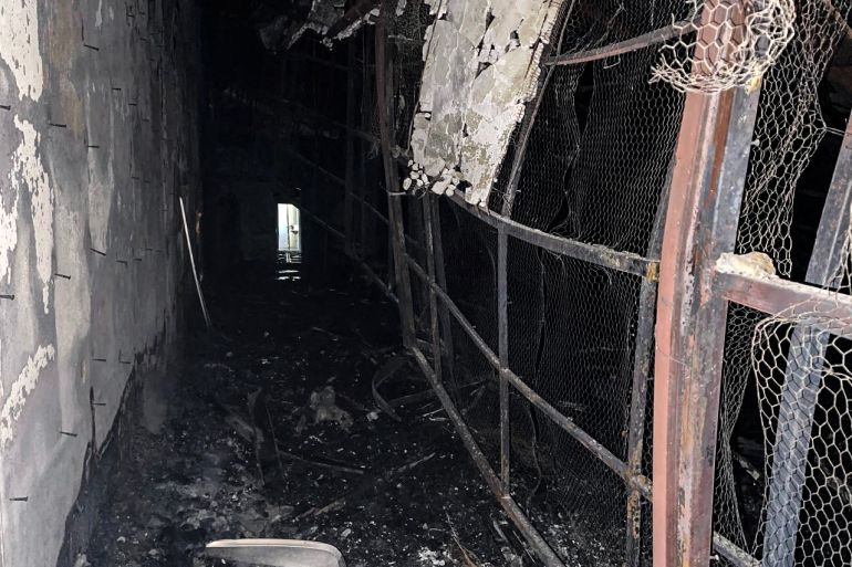 State television showed the charred remains of a room it said was a “sewing workshop” torched by inmates who reportedly wanted to make a six-metre (20-foot) jump from its roof to make their escape but were apprehended after security forces entered the prison.