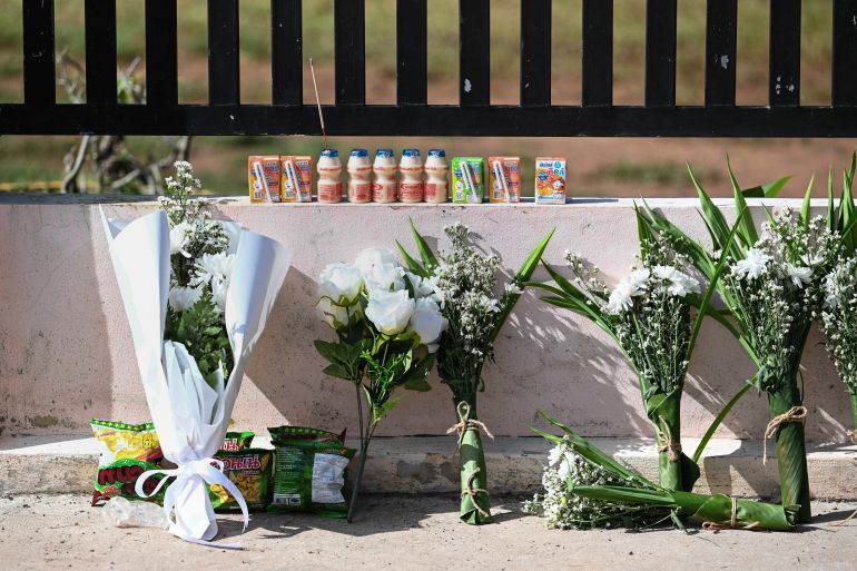 ![Bouquets of flowers and children's drinks are placed outside a nursery in Thailand on October 7 2022, the day after a mass killing by a former police officer in northeastern Nong Bua Lamphu province [AFP/Manan Vatsyayana]](https://www.aljazeera.com/wp-content/uploads/2022/10/000_32KW6BT.jpg?resize=770%2C513&quality=80)