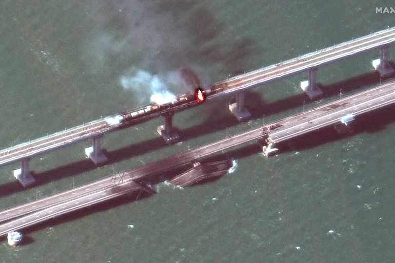 The bridge, which is seen as a symbol of the Kremlin’s annexation of the Crimean Peninsula in 2014, is a vital supply route for Russian forces fighting in Ukraine. It was opened with great fanfare by Russian President Vladimir Putin in 2018.