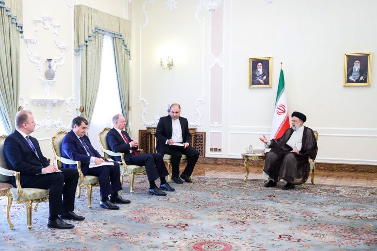 Tehran, Iran – Russia’s security chief has held talks about the war in Ukraine and improving bilateral relations with Iranian President Ebrahim Raisi and top security official Ali Shamkhani.