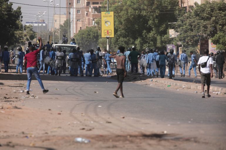 After large protests were held on the first anniversary of the military coup, Sudan’s police force released a statement calling for exceptional powers to crack down on what it alleged were “armed formations” among demonstrators.
