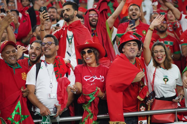 Morocco fans, who have been exuberant in their support for their national team throughout the tournament, slowly made their way into the venue in several large groups, singing and dancing to Arab and French songs, including Algerian singer Khaled’s C’est la vie, to uplift the mood.