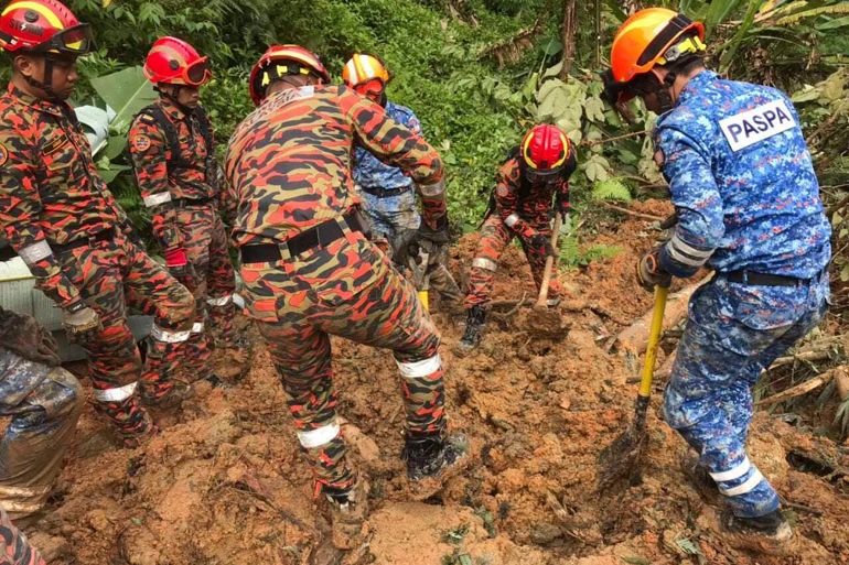 Emergency services, including officers from 12 fire stations and civil defence, said they rushed to the scene – in a hilly part of the state of Selangor – after receiving a distress call at 2.24am on Friday (18:24 GMT on Thursday).