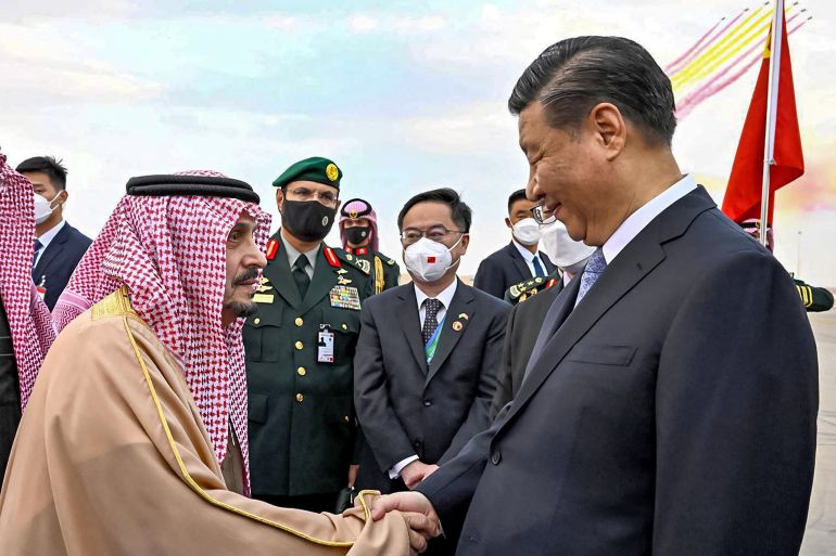 Chinese President Xi arrives in Saudi Arabia to much fanfare, unlike the low-key welcome afforded to US President Biden.