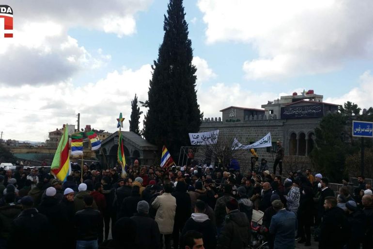 Protesters on Friday gathered in the government-held city’s main square, waving the multicoloured Druze community flag.