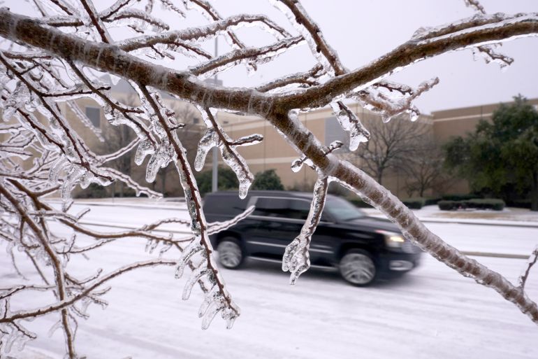 Freezing rain and snow weighed down tree limbs and encrusted power lines, and brought rare measurable snowfall and hundreds of power outages to parts of the southern state Texas.