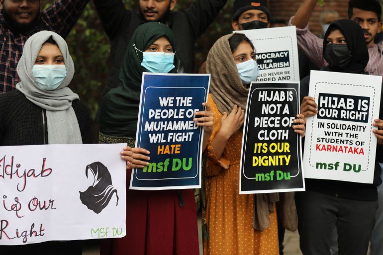 Students at a government-run high school were told not to wear hijabs last month. Since then Hindu far-right groups have tried to prevent hijab-wearing Muslim women from entering educational institutions in the state.