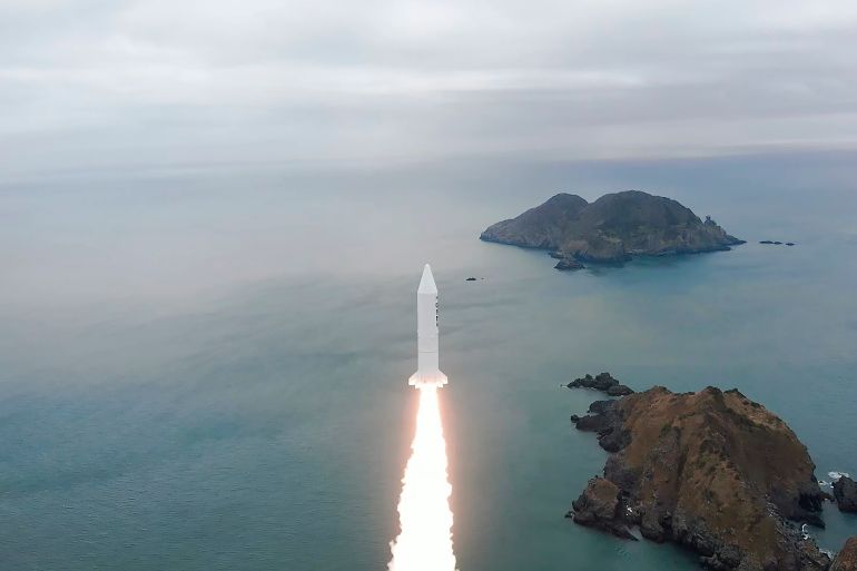South Korea’s launch took place from Taean, 150 kilometres (93 miles) southwest of Seoul, in front of Defence Minister Suh Wook and other senior defence officials, with photos showing the rocket soaring into the sky before releasing a dummy satellite in space.