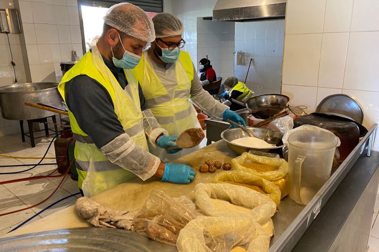 On this night, families will receive freshly baked bread instead of sfiha, a dish of flatbread topped with meat and pine nuts. But Abdullah and the cooks in the kitchen agree to alternate to make sure families are not deprived of traditional meals.