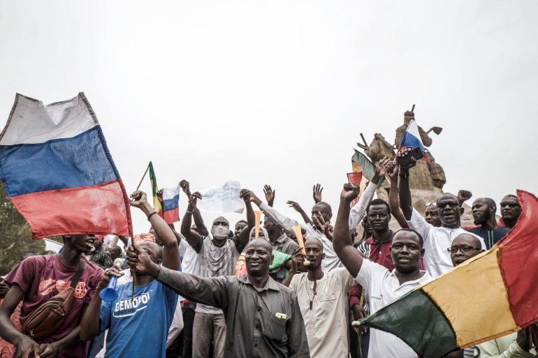Russia is cast as the country’s saviour and pro-Russia marches have been held in support of the war in Ukraine and to criticise former security partner France – though several protesters said they are paid.