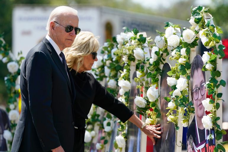 US President Joe Biden – who has not spoken publicly about the police response to the shooting – tried on Sunday to comfort families in Uvalde.