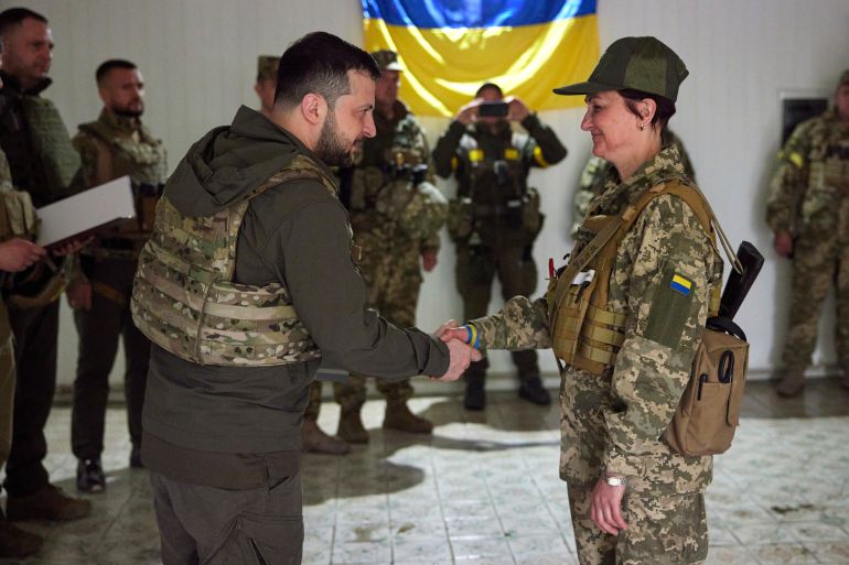 ![Ukrainian President Volodymyr Zelenskyy awards a servicewoman during a visit to the Kharkiv region on Sunday, May 29, 2022 [Ukrainian Presidential Press Office via AP]](https://www.aljazeera.com/wp-content/uploads/2022/05/AP22149508612245.jpg?resize=770%2C513&quality=80)