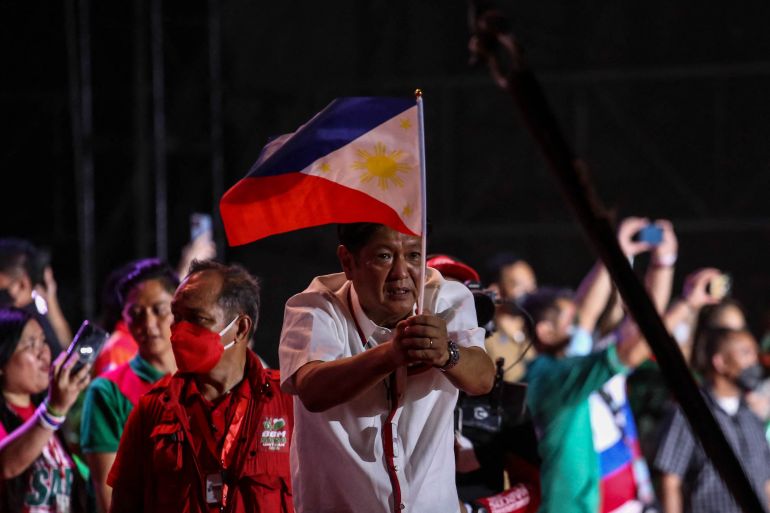 ![Philippines presidential candidate Ferdinand Marcos Jr greets his supporters during the last day of campaign rally at Paranaque City, suburban Manila on May 7, 2022 [Jam Sta Rosa/ AFP]](https://www.aljazeera.com/wp-content/uploads/2022/05/marcos.jpg?resize=770%2C513&quality=80)