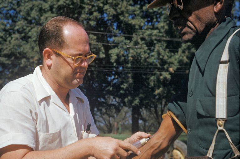 ![In this 1950's photo released by the National Archives, a Black man included in a syphilis study has blood drawn by a doctor in Tuskegee, Alabama. Fifty years after the infamous Tuskegee syphilis study was revealed to the public in 1972 and halted, Manhattan-based philanthropy organisation Milbank Memorial Fund is publicly apologising for its role in the infamous study [File photo: National Archives/AP]](https://www.aljazeera.com/wp-content/uploads/2022/06/AP22159654369302.jpg?resize=770%2C513&quality=80)