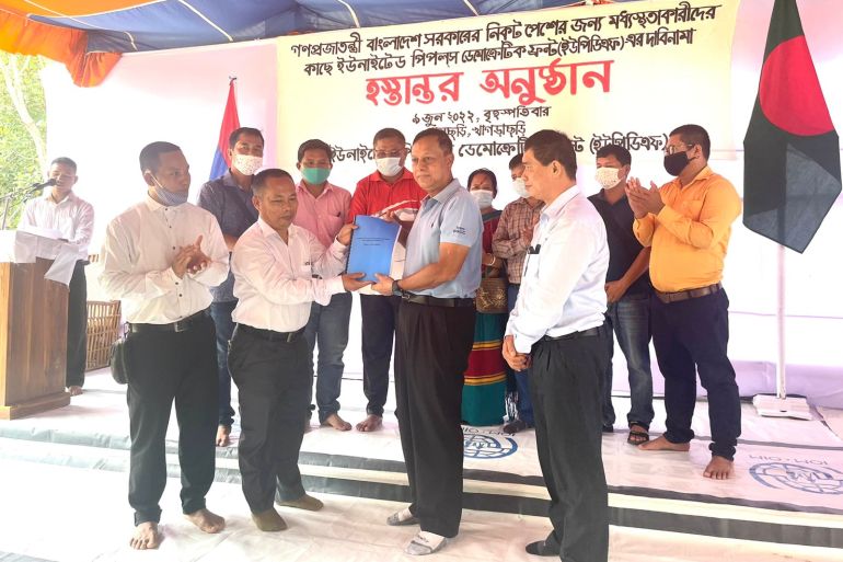 The United People’s Democratic Front, based in the country’s Chittagong Hill Tracts in the south, submits a 66-page peace proposal.
