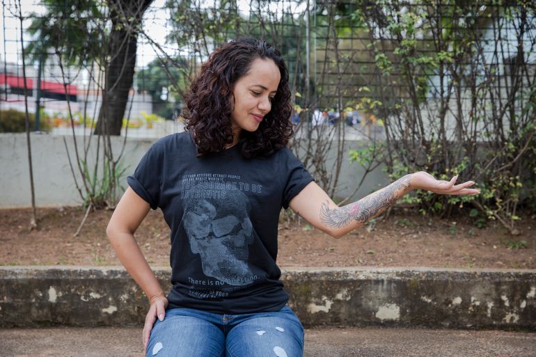 Sao Paulo, Brazil – Talita Souza walked through the doors of Stylo Tattoo in Sao Paulo hoping to cover up the scars on her forearms – the result of domestic abuse.