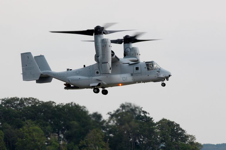 All five United States Marines on board an Osprey aircraft were killed when it crashed in the California desert near the Arizona border, the US Marine Corps said on Thursday.