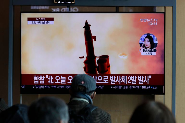 ![People watch a TV screen showing a file image of North Korea's firing of projectiles at the Seoul Railway Station in Seoul, South Korea in 2020. North Korea appeared to have conducted artillery firing drills on Sunday, July 10, 2022, South Korea said, days after the United States deployed sophisticated fighter jets to South Korea [File: Lee Jin-man/AP]](https://www.aljazeera.com/wp-content/uploads/2022/07/AP22191514113705.jpg?resize=770%2C513&quality=80)