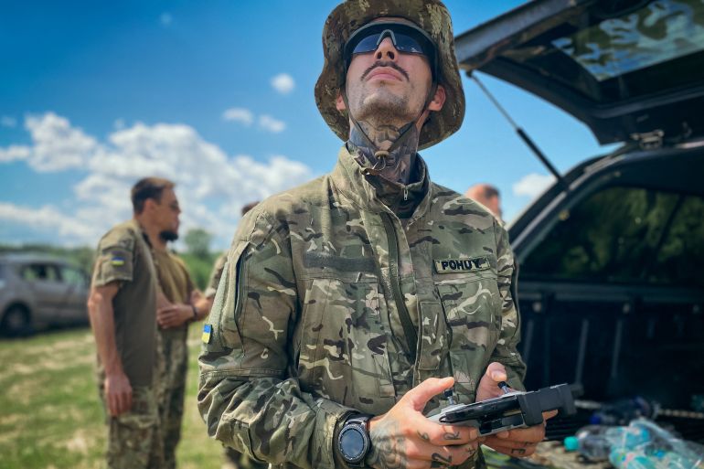 ![Ukrainian lieutenant Anton Galyashinskiy holds a Parrot drone during a practice session on the outskirts of Kyiv, on July 14, 2022 [Ionut Iordachescu/AFP]](https://www.aljazeera.com/wp-content/uploads/2022/07/000_32EG3UL.jpg?w=770&resize=770%2C577&quality=80)