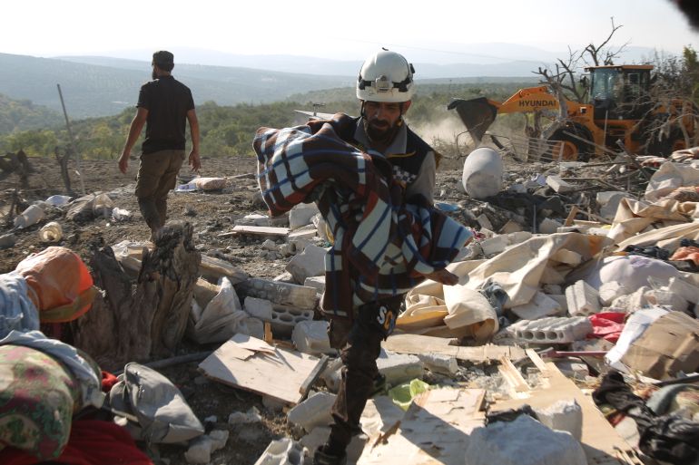 Al-Jadidah, Syria – Seven civilians, including four children from one family, have been killed in a Russian air attack in northern Syria’s opposition-held Idlib province, according to the Syrian Civil Defence, also known as the White Helmets, as well as family members and medical staff.