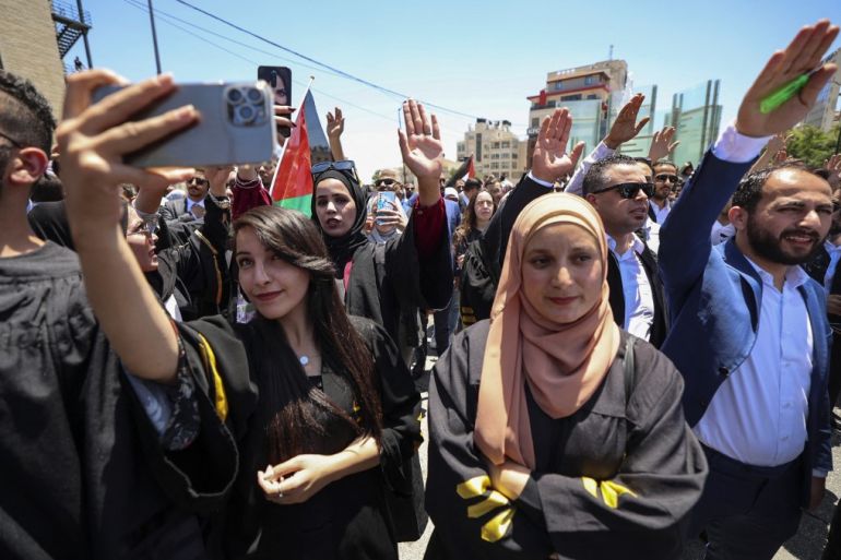 Hundreds of Palestinian lawyers have held a rare street protest in the occupied West Bank against the Palestinian Authority’s “rule by decree”, condemning President Mahmoud Abbas for governing without a parliament.