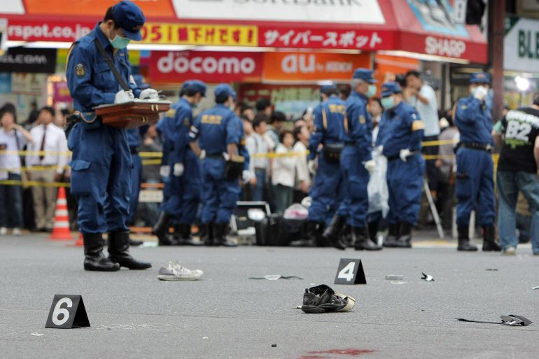 The June 2008 attack, which also injured 10 people, began with Kato driving a truck into a crowd. After stabbing several people, the then 25-year-old was arrested at the scene, telling police: “I came to Akihabara to kill people. It didn’t matter who I’d kill.”