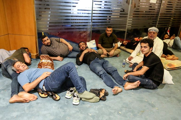 “The demonstrators announce a sit-in until further notice,” al-Sadr’s movement said in a brief statement to journalists carried by state news agency INA.
