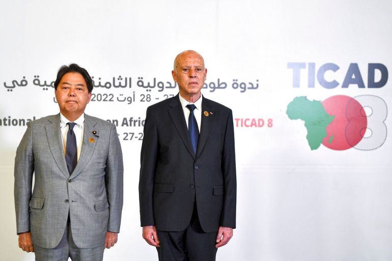 ![Tunisia's President Kais Saied, right, and Japan's Foreign Minister Yoshimasa Hayashi, left, pose for a photo during the eighth Tokyo International Conference on African Development (TICAD) in Tunisia's capital Tunis on Saturday, Aug. 27, 2022 [Fethi Belaid/pool via AP]](https://www.aljazeera.com/wp-content/uploads/2022/08/AP22239338654700.jpg?resize=770%2C513&quality=80)