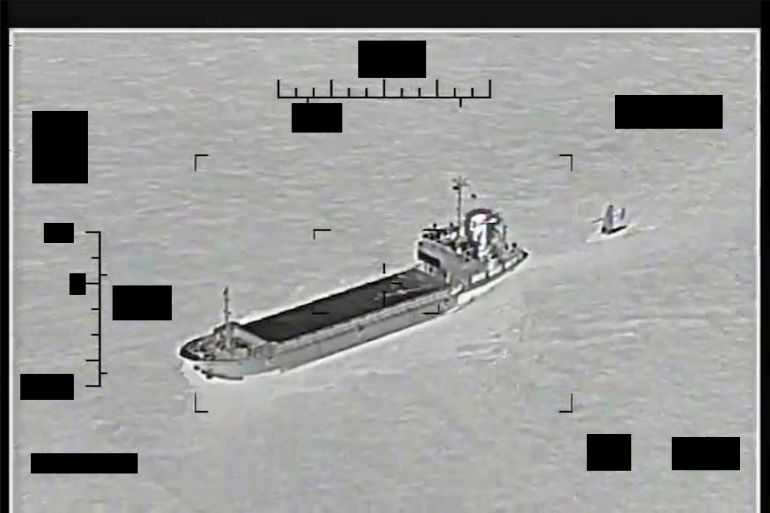 Hawkins said the incident ended peacefully after some four hours as the Iranians unhooked the tow line to the drone and left the area as the American forces were nearby.