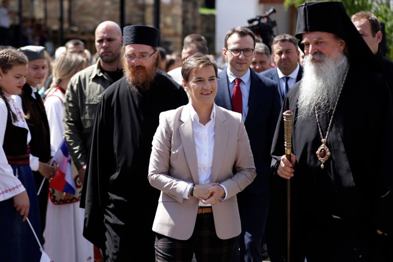 In the ethnically divided city of Mitrovica, about 1,000 local Serbs greeted Brnabic, waving Serbian flags and holding signs that read “We have only one prime minister” and “Welcome to Serbia, holy land of Kosovo”.