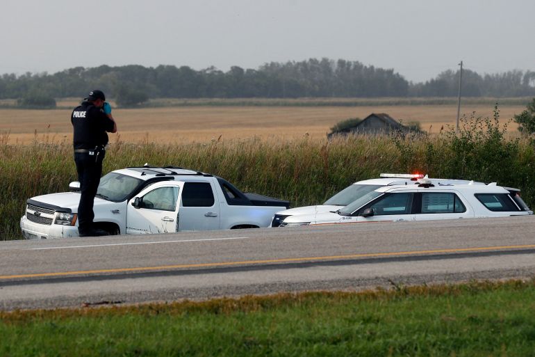 Just before police said Myles Sanderson was taken into custody on Wednesday, they issued an emergency alert that said a person “armed with a knife” was travelling in a stolen car in Wakaw, a town about 110km (70 miles) southwest of James Smith Cree Nation.