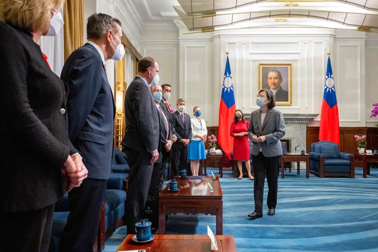![Taiwan's President Tsai Ing-wen (right), meets United States Congressional members on Thursday, September 8, 2022 [Taiwan Presidential Office via AP]](https://www.aljazeera.com/wp-content/uploads/2022/09/AP22251296014060.jpg?resize=770%2C513&quality=80)