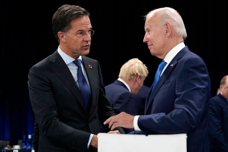 Earlier in the day, as the two leaders sat in the Oval Office, Biden said Washington and Amsterdam were working together to “meet the challenges of China”.