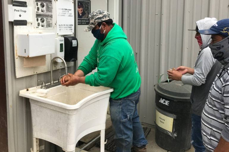 ![Farmworkers wash their hands before returning to work at a farm outside of Half Moon Bay, California [Brian Osgood/Global News Insight]](https://www.aljazeera.com/wp-content/uploads/2020/09/c0486847197e4bb2bb243368dbea0894_18.jpeg?resize=770%2C513&quality=80)