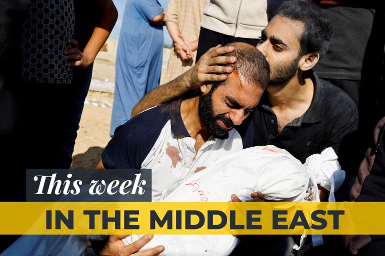 ![The father of Alma Al Majayda, 3, killed in Israeli strikes, embraces her body during her funeral, amid the ongoing conflict between Israel and Palestinian Islamist group Hamas, in Khan Younis in the southern Gaza Strip [Mohammed Salem/Reuters]](https://www.aljazeera.com/wp-content/uploads/2023/10/This-week-in-the-middle-east58_outisde-image-1500-x1000-1697796571.jpg?resize=770%2C513&quality=80)