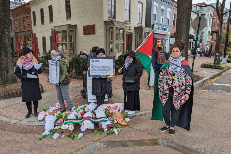 On a chilly Sunday morning in the Capitol Hill neighbourhood, the activists protested silently, passing out leaflets to passersby. At their feet were a row of small figures wrapped in white shrouds, each splattered in blood — and each bearing the name of a real child killed in Gaza. Julia’s name was on one of them.