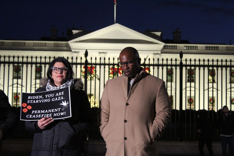 The vigil – attended by Tlaib and other progressive Congress members – was organised by activists, state lawmakers and artists, who are hunger striking in Washington, DC, in support of a ceasefire in Gaza.