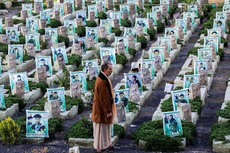 ![A man stands between the graves of people reportedly killed during the war in Yemen at a cemetery in the Houthi-held capital Sanaa on April 12, 2023 during the Muslim holy month of Ramadan. [MOHAMMED HUWAIS/AFP/file]](https://www.aljazeera.com/wp-content/uploads/2023/12/yemen-cem-1703346433.jpeg?resize=770%2C513&quality=80)