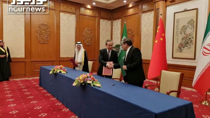 The agreement signed in Beijing on Friday said the two countries’ foreign ministers will meet to discuss diplomatic missions within two months, marking the end of a seven-year rift.