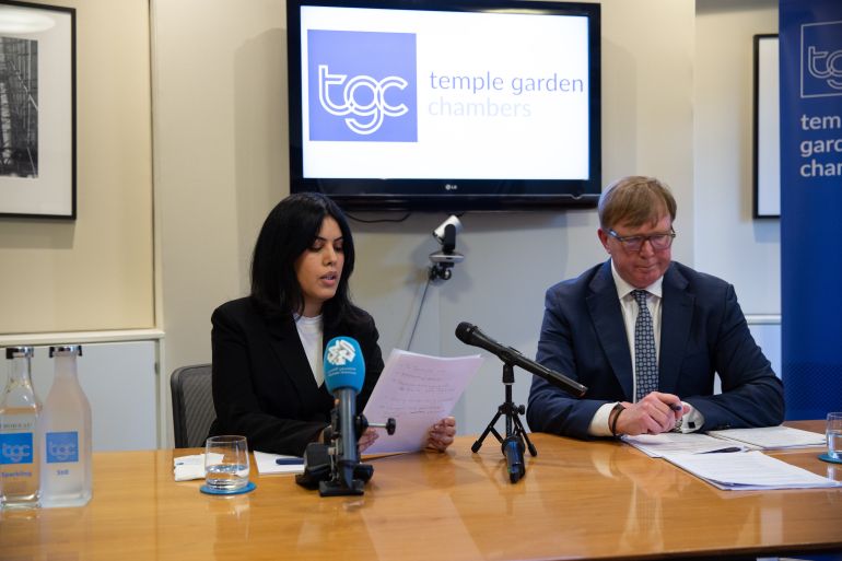 “We are asking the foreign secretary [James Cleverly] to review [our application] urgently and impose sanctions against these particular individuals who we’ve identified,” Rodney Dixon KC, the lawyer in charge of the case, said at a news conference in London on Wednesday.