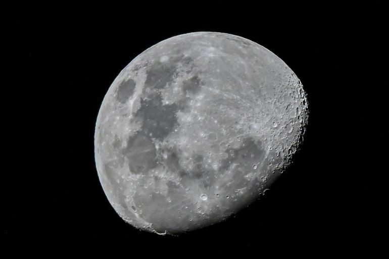 The moon lacks the bodies of liquid water that are a hallmark of Earth. But its surface is thought to harbour a fairly substantial amount of water, for example in ice patches residing in permanently shadowed locales and trapped in minerals.