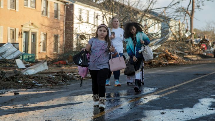 Ashley Macmillan told The Associated Press news agency that she, her husband and their children huddled with their dogs in a small bathroom as a tornado passed, “praying and saying goodbye to each other, because we thought we were dead”. A falling tree seriously damaged their home, but no one in the family was hurt.