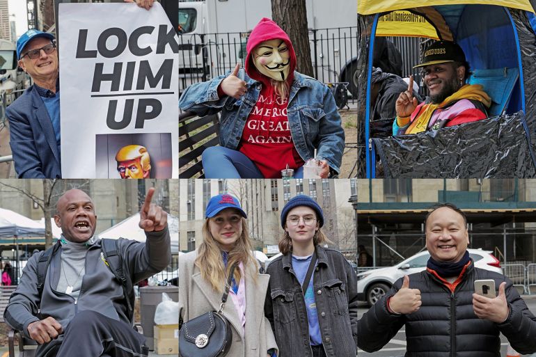 ![Bob Fertik, 65, an anti-Trump supporter and president of progressive blog, Democrats.com, said he trekked to Trump Tower to catch a glimpse of the “scary protesters.” [Dorian Geiger/Global News Insight]](https://www.aljazeera.com/wp-content/uploads/2023/04/nyc6.jpg?w=770&resize=770%2C513&quality=80)