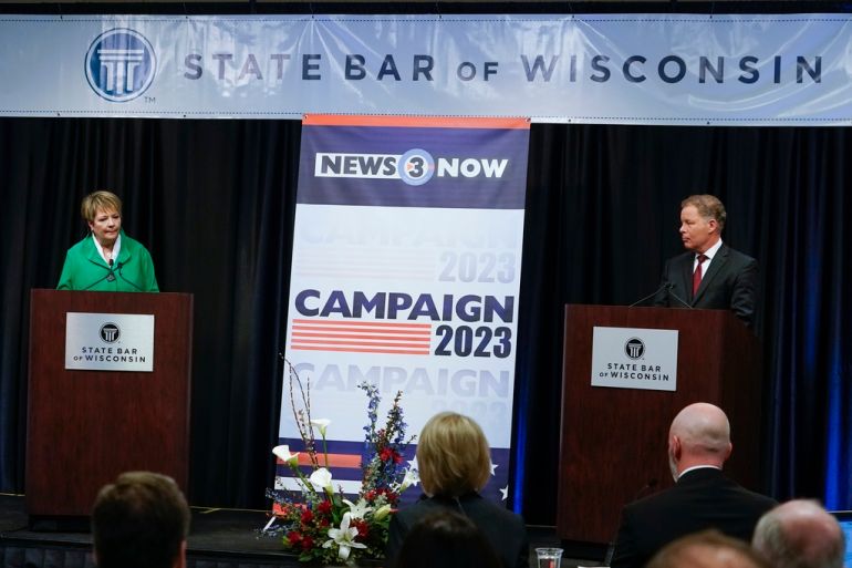 Protasiewicz defeated conservative candidate Daniel Kelly in what New York University’s Brennan Center for Justice called the most expensive judicial election in US history. More than $42.3m had been spent as of Monday, according to a review by the website WisPolitics.com, far outstripping the previous record of $15.2m.
