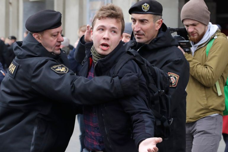 Protasevich worked for the news agency, Nexta, which reported on the mass protests that followed Lukashenko’s re-election in 2020, which the opposition and the West denounced as rigged.